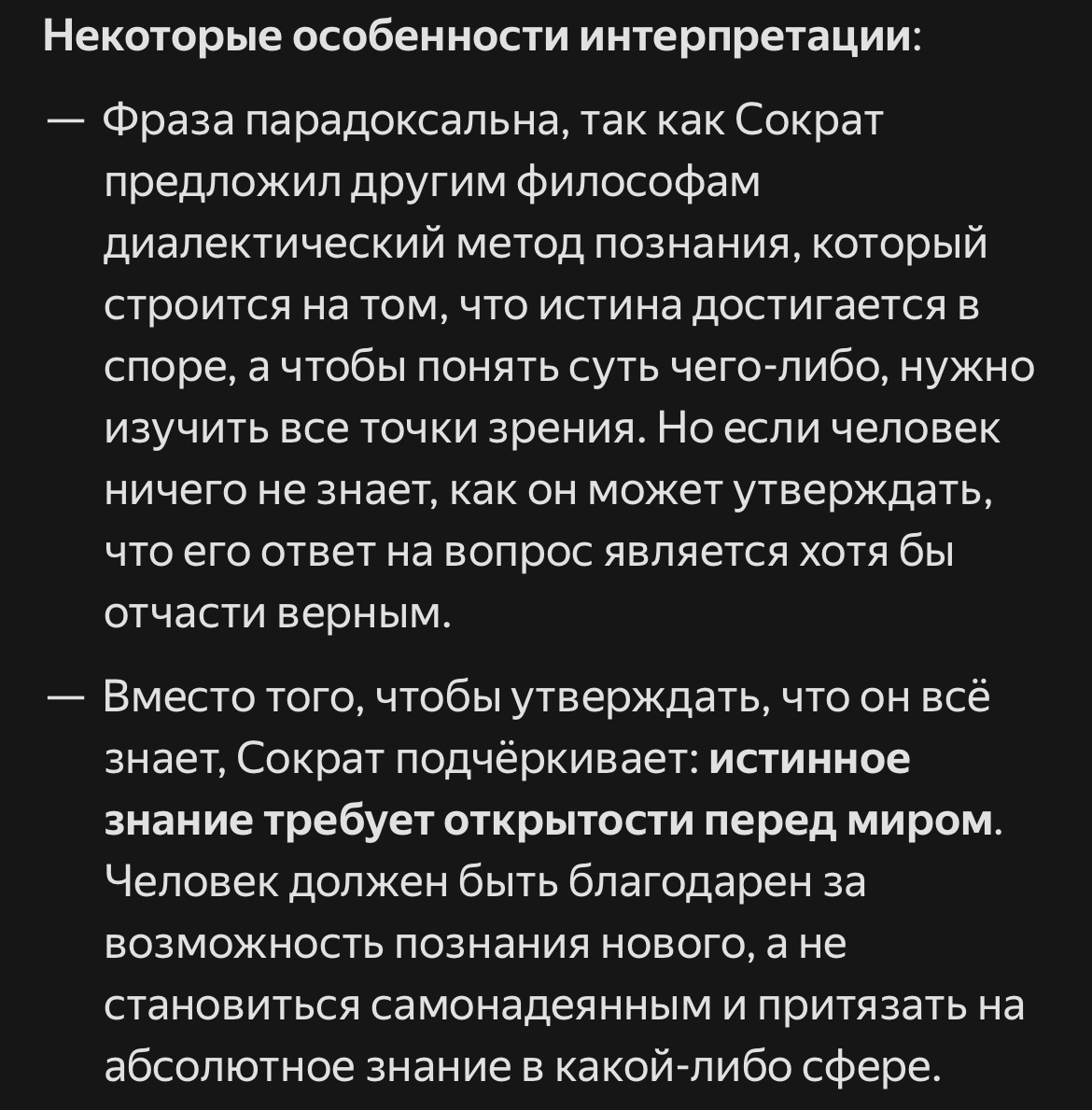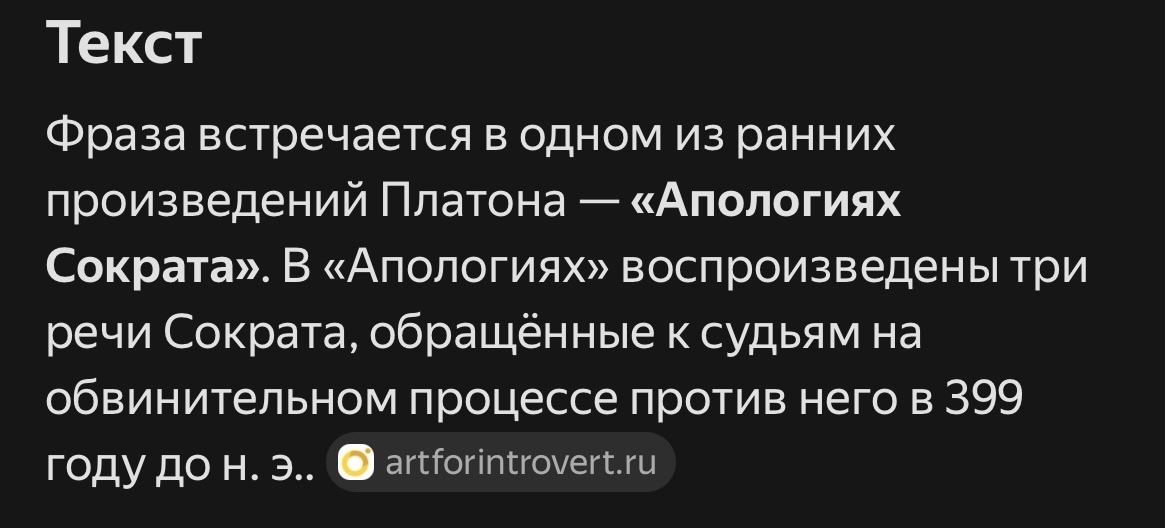 Не зря я упоминала ее именно в статье про чужие мнения, так как Великим философом она, в свое время, была адресована именно судьям, пытавшимся выдвинуть обвинения против него